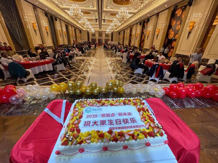 華聯(lián)領世注重員工關(guān)懷,大會上齊聲唱起祝你生日快樂,公司領導也為生日成員送上祝福,愿甜美的蛋糕時給你幸福到永遠!